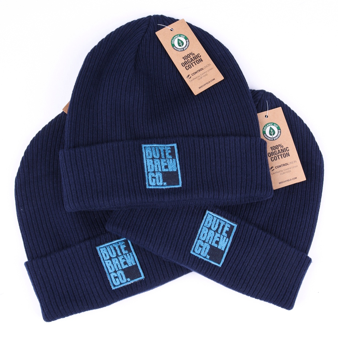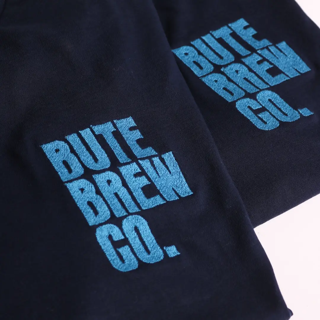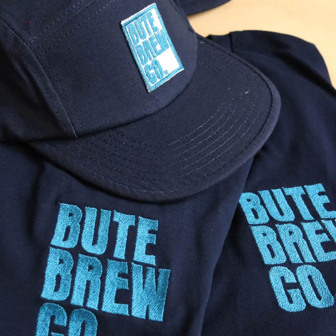 It was incredibly important for But Brew Co. to have high quality merchandise. They had bought merch for their beer company in the past and were disappointed by the quality of the products. When they came across M&R they were excited to see that we valued high quality products as much as they do. We embroidered organic cotton t-shirts and sweatshirts as well as embroidery patches made out of recycled denim that were then sewn onto beanie hats and caps.